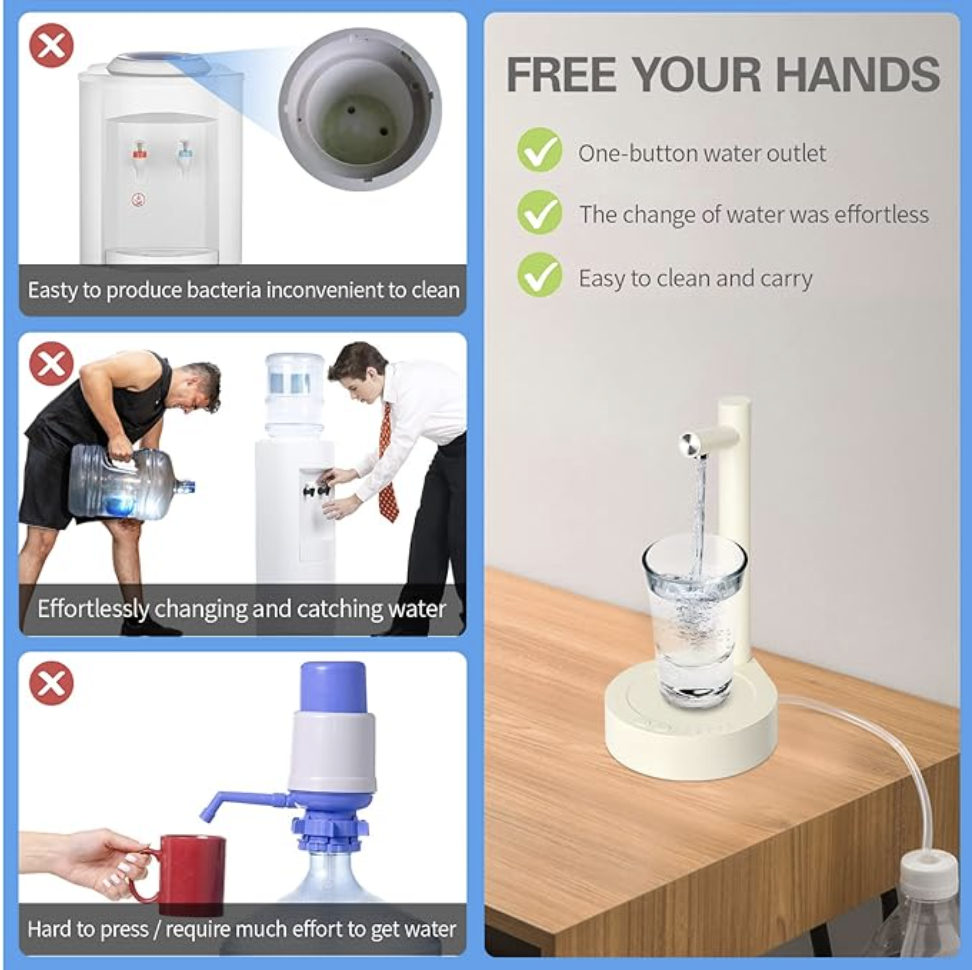 Alta compatibilidad: el dispensador de botellas de agua de escritorio es adecuado para la mayoría de botellas de uso general, y las botellas estándar se pueden utilizar abriendo la tapa.