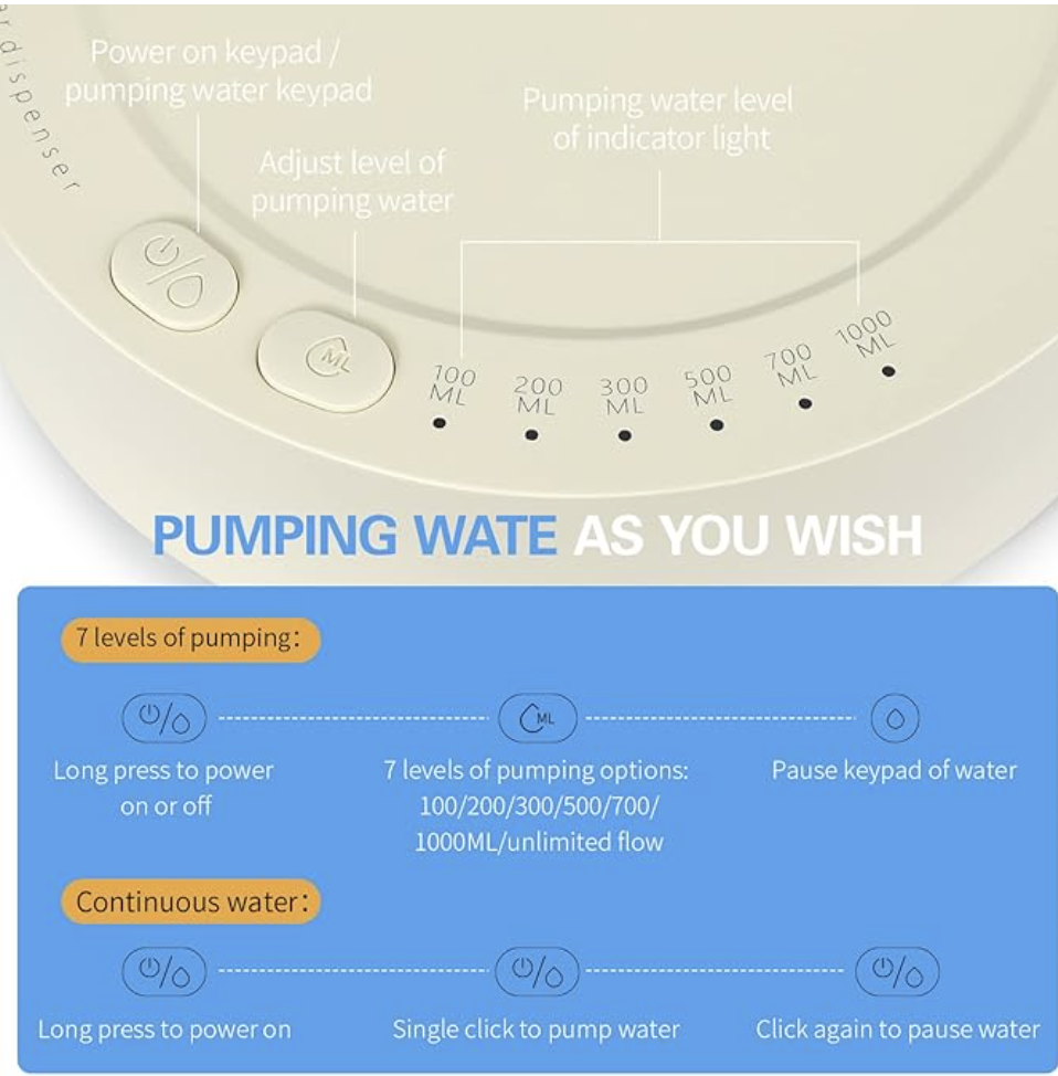 6 niveles de suministro de agua cuantitativo, con 7 opciones de suministro de agua. Libertad inalámbrica.