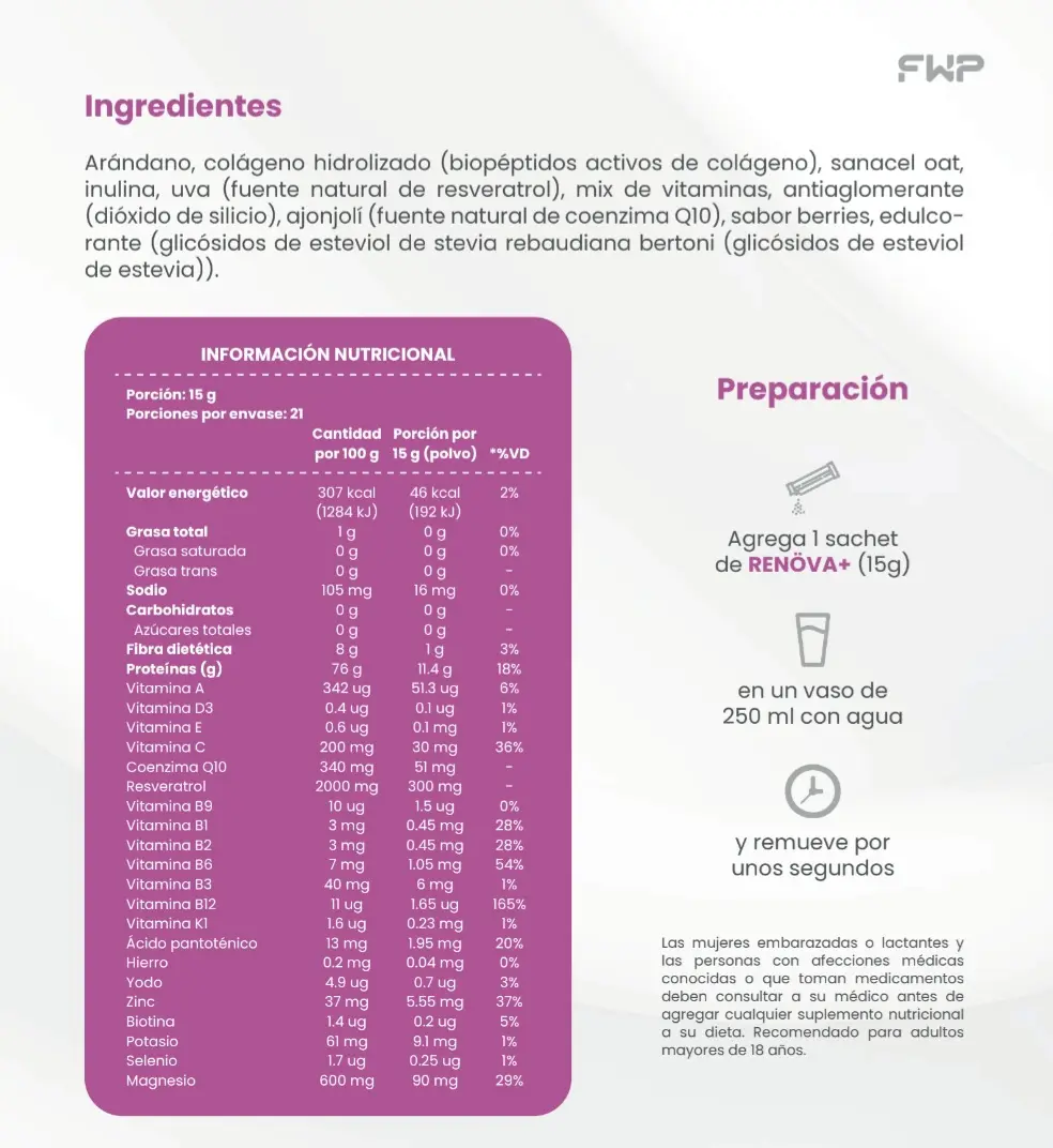 - Con aportes de ingredientes activos: Algunos productos, como Renova Be, incluyen otros ingredientes beneficiosos como el ácido hialurónico, el retinol y vitaminas que potencian sus efectos.